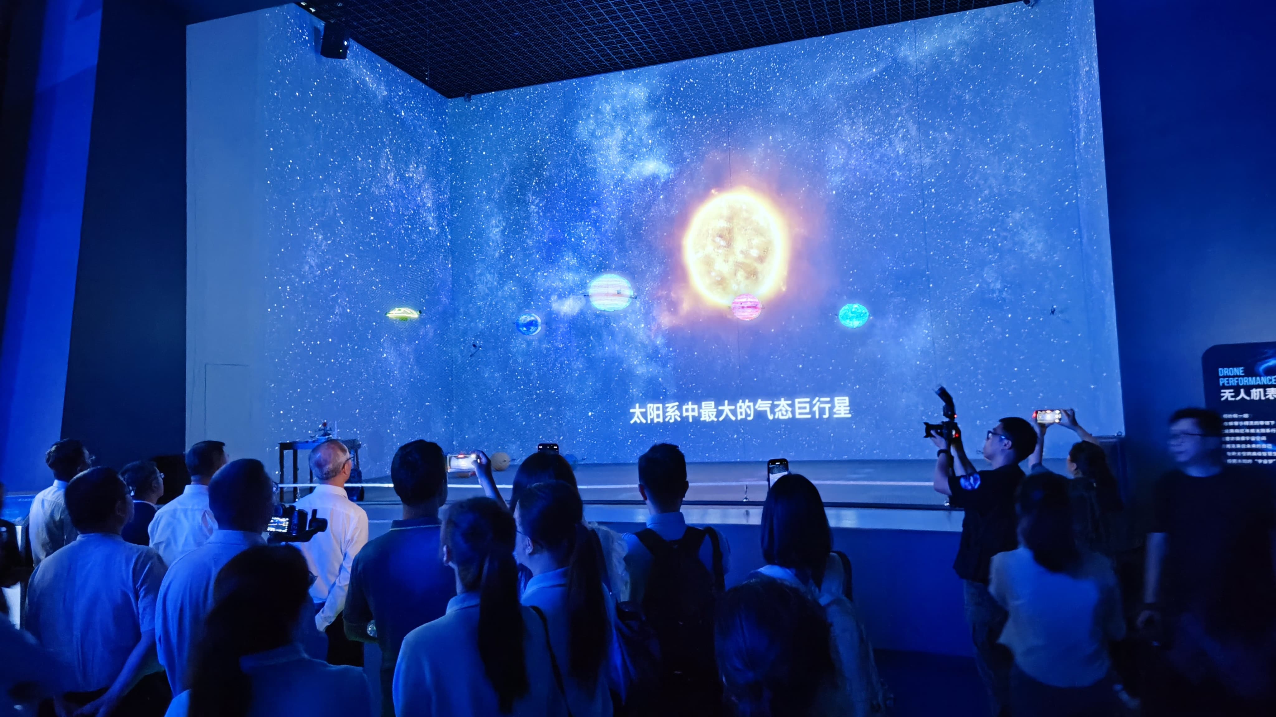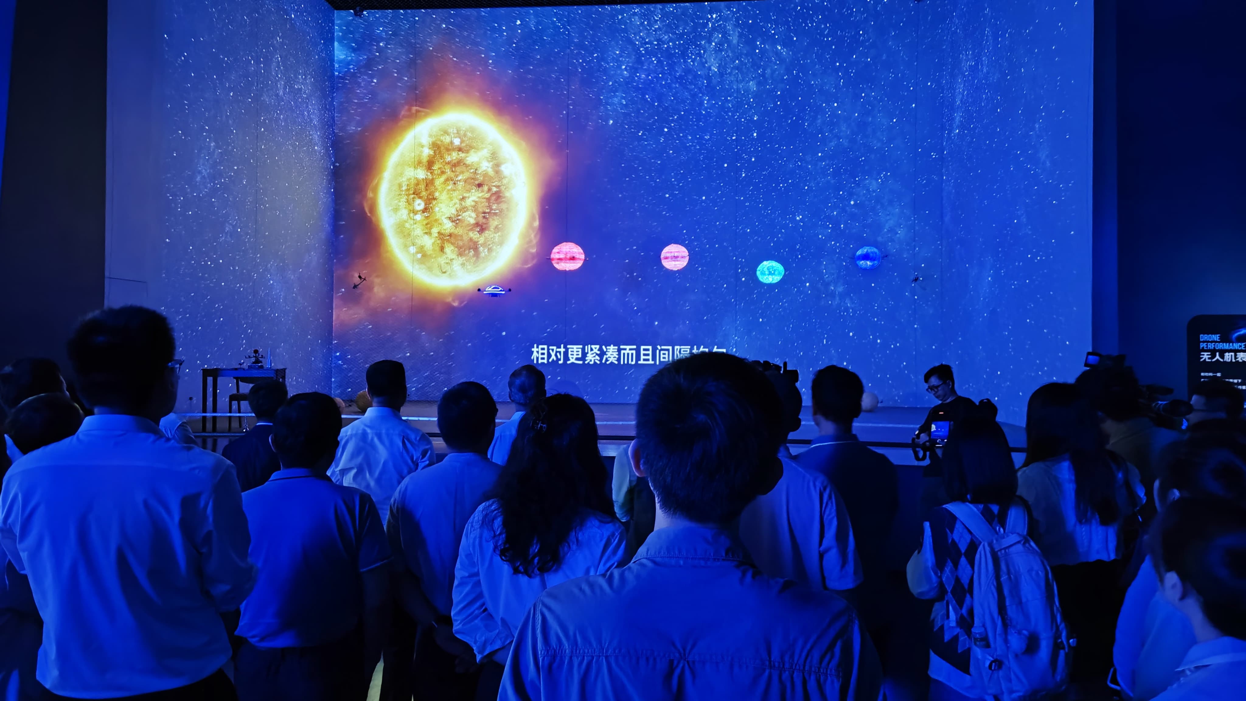 無人機化身“星際使者”,開啟全球科技館首創(chuàng)應用,在“逐夢星辰”展館的“星際漫游”展項中,中航恒拓技術團隊突破傳統(tǒng)展示邊界,將無人機編隊技術與沉浸式舞臺劇深度融合。通過精密算法與定制化掛載設計,無人機被賦予“生命”——它們既是光影的畫筆,更是劇情的靈魂角色。46億年宇宙史詩的時空躍遷,10架無人機以厘米級精準編隊,動態(tài)復現太陽系行星遷移的壯闊圖景,配合數字投影,觀眾仿佛置身于星辰誕生的混沌與秩序之中。